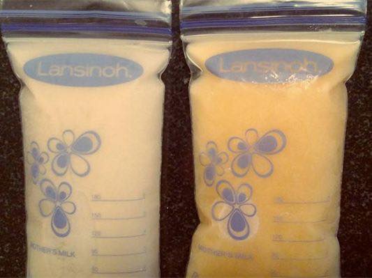 The yellowish liquid indicates increased immune factors in the breast milk.